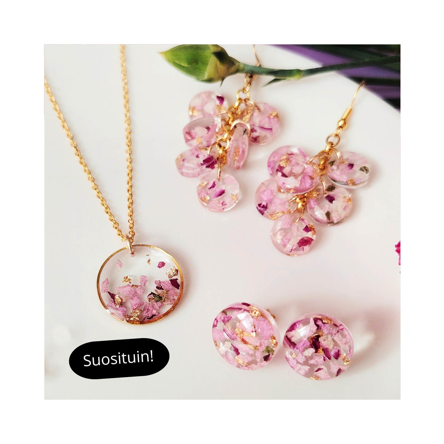 Haluatko säilöä elämäsi tärkeät kukat koruihin? Tai teettää jotain mitä ei löydy valmiina verkkokaupasta? Valitse kolmesta vaihtoehdoista Sinulle sopivin.