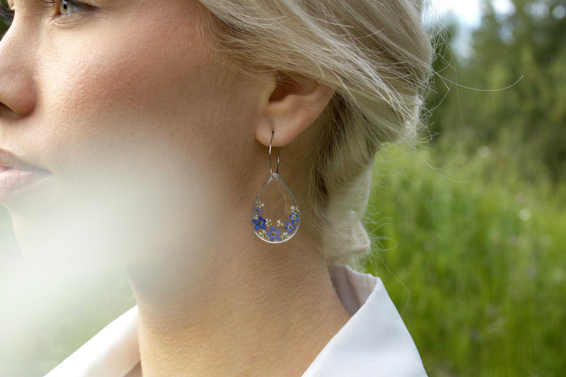 Nyt lemmikkejä suositussa pisaran muodossa! Lemmikkien seassa on myös pienen pieniä koiranputken kukkia. Kaikki käytetyt kukat on poimittu Pohjois-Suomesta Oulujoen varrelta kesällä 2025.