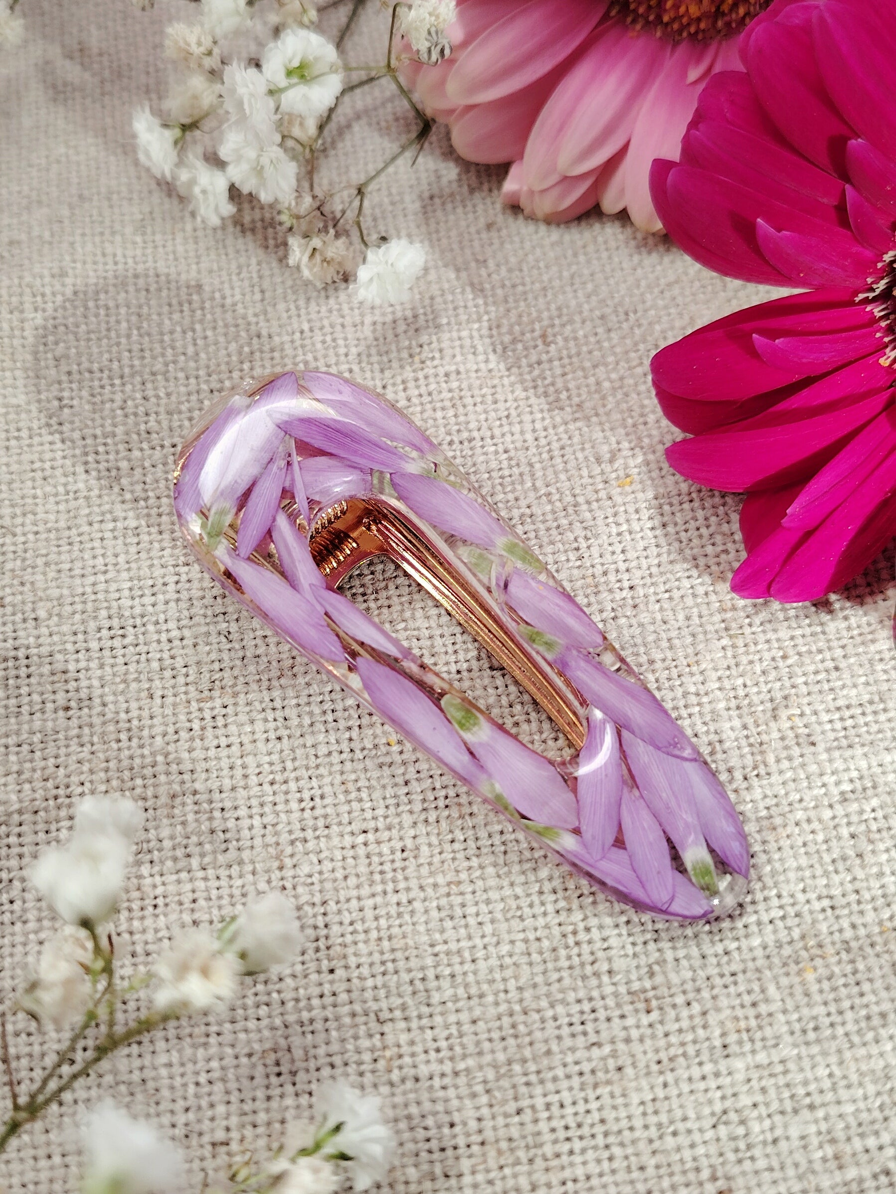 Metallinen klipsiosa on kullan värinen ja kiinnitetty suoraan hartsiin valamalla, ei siis sisällä ylimääräisiä liimoja. Mitat: kolmion ja suorakulmion muotoinen: pituus 6,5cm, leveys 2,3cm.