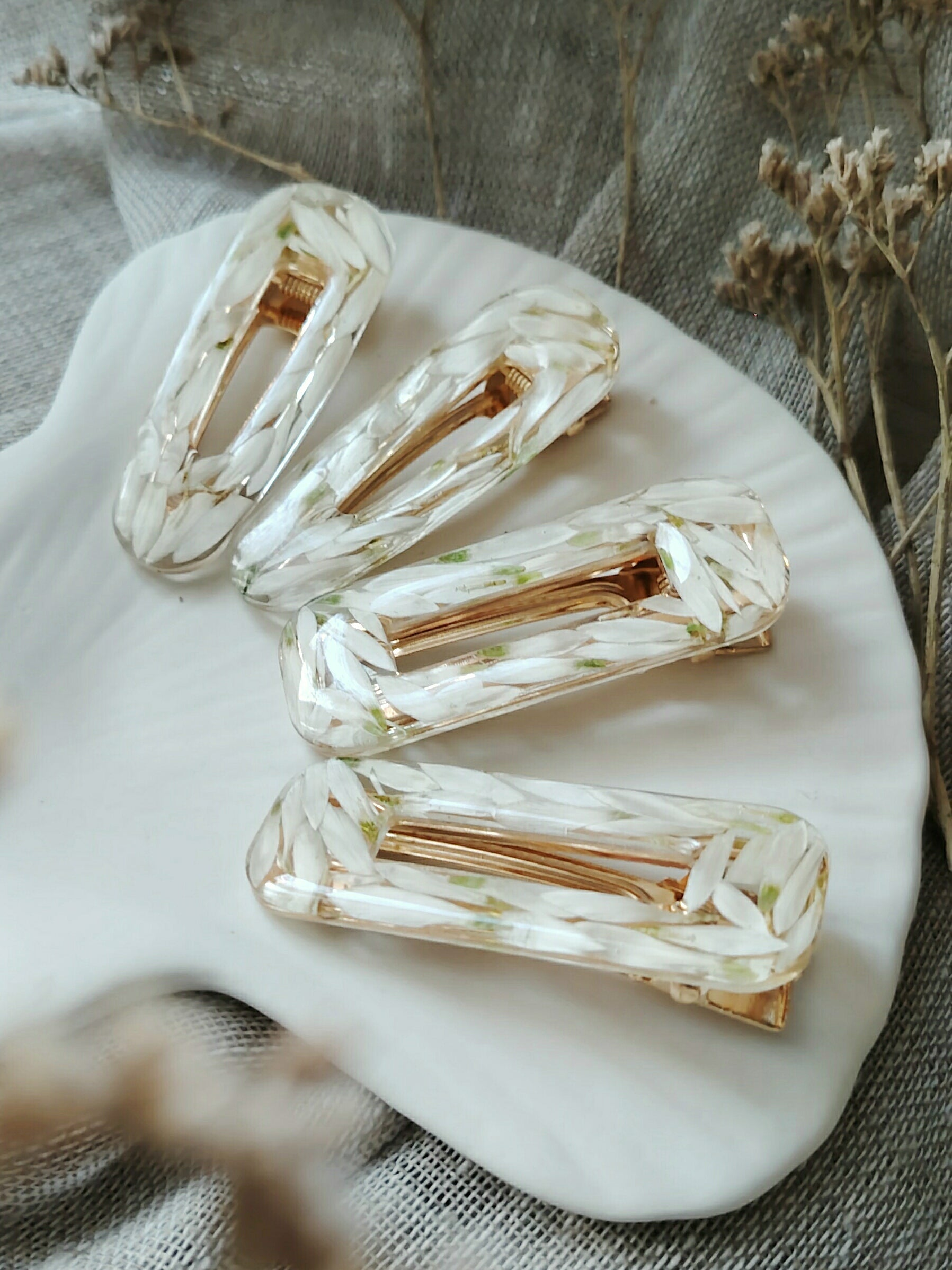 💮 Metallinen klipsiosa on kullan värinen ja kiinnitetty suoraan hartsiin valamalla, ei siis sisällä ylimääräisiä liimoja. Mitat: kolmion ja suorakulmion muotoinen: pituus 6,5cm, leveys 2,3cm.